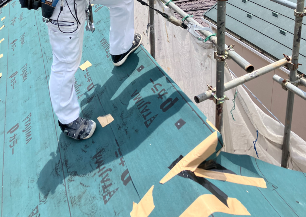 緑色っぽいシートが防水材です